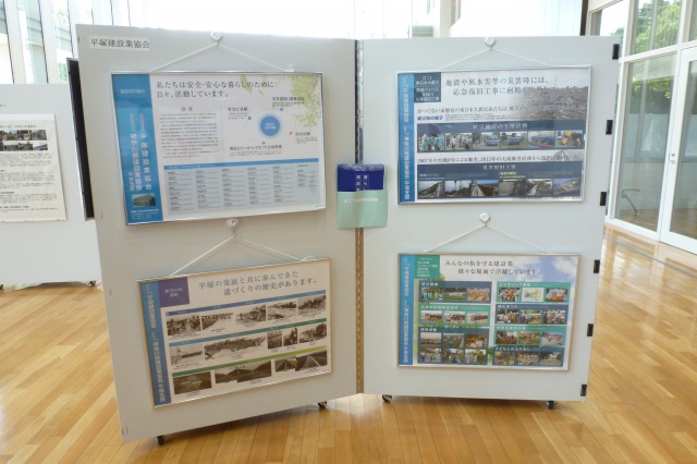 (一社)平塚建設業協会は、日頃、工事などでご協力を頂いている市民の皆様に、活動内容をお伝えできればと思い「道の日」の記念行事(パネル展示)に他の団体と共に参加しています。