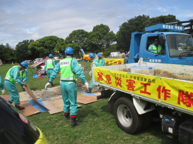 平塚建設業協会から29名が参加し、道路啓開作業を行いました。